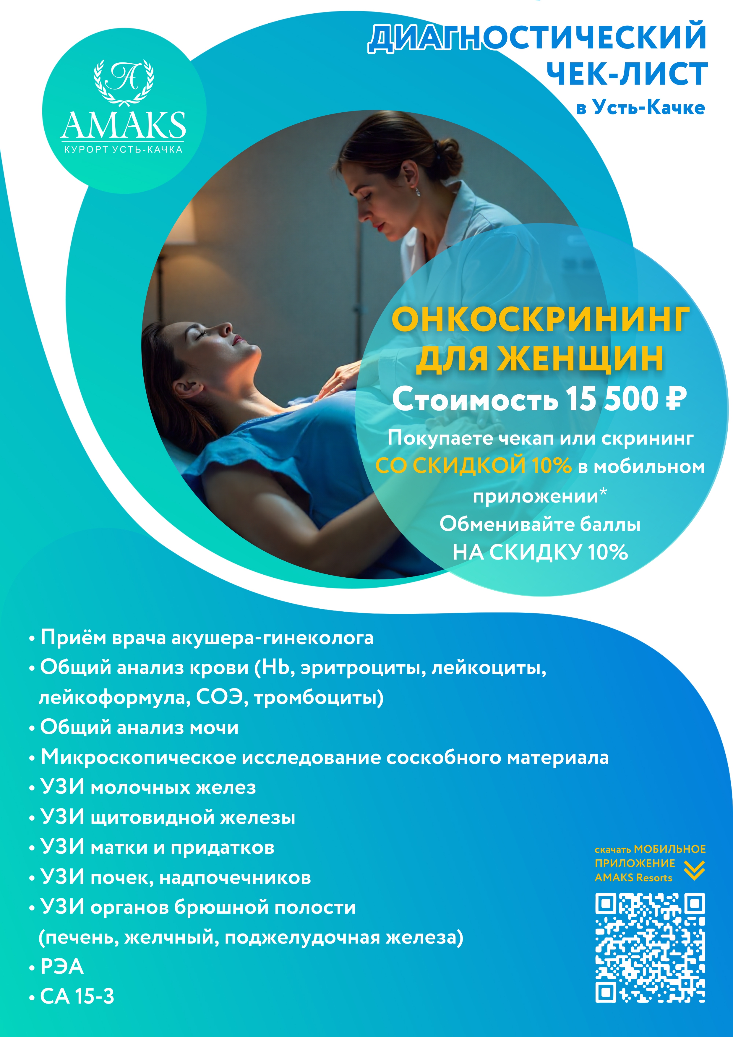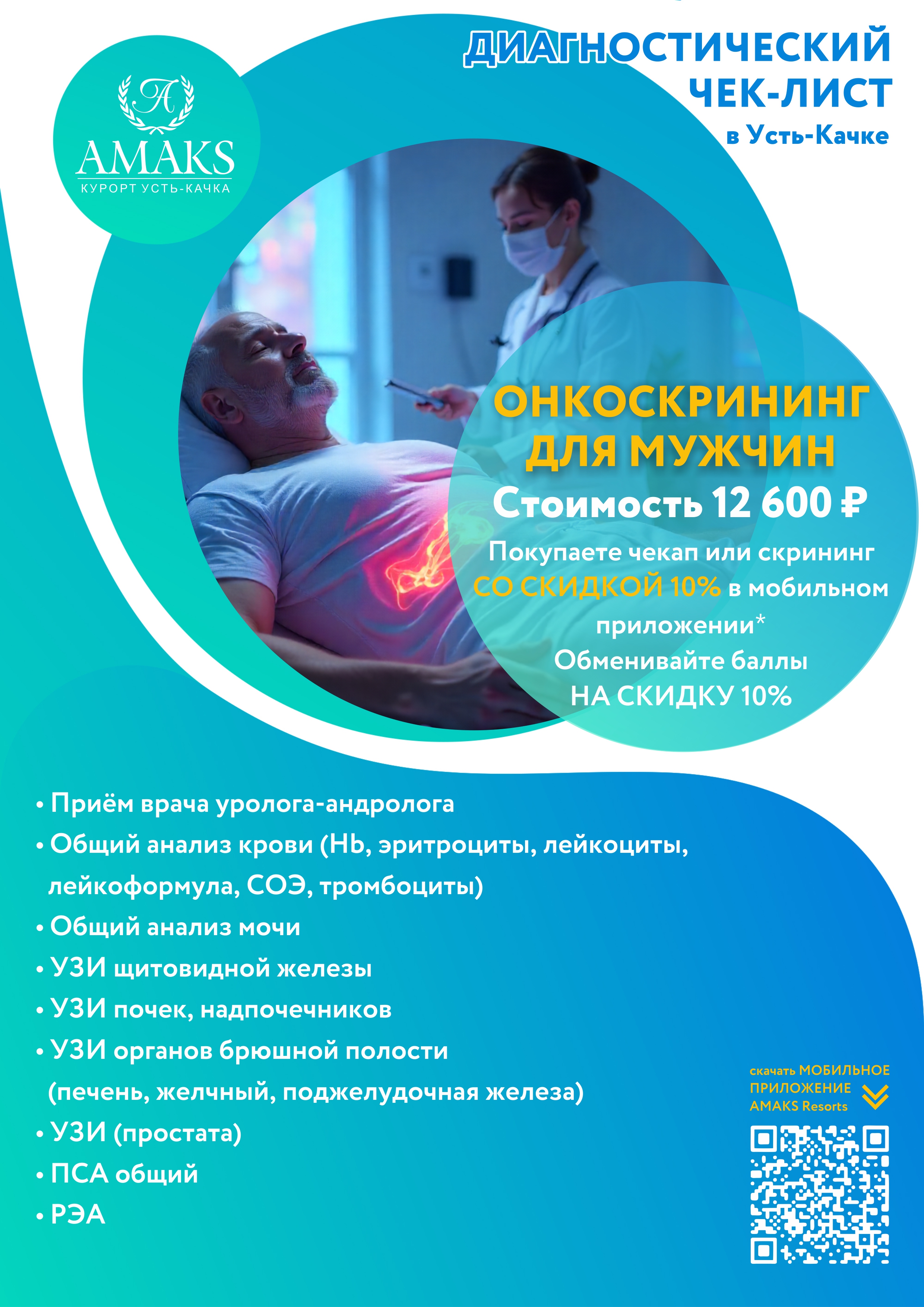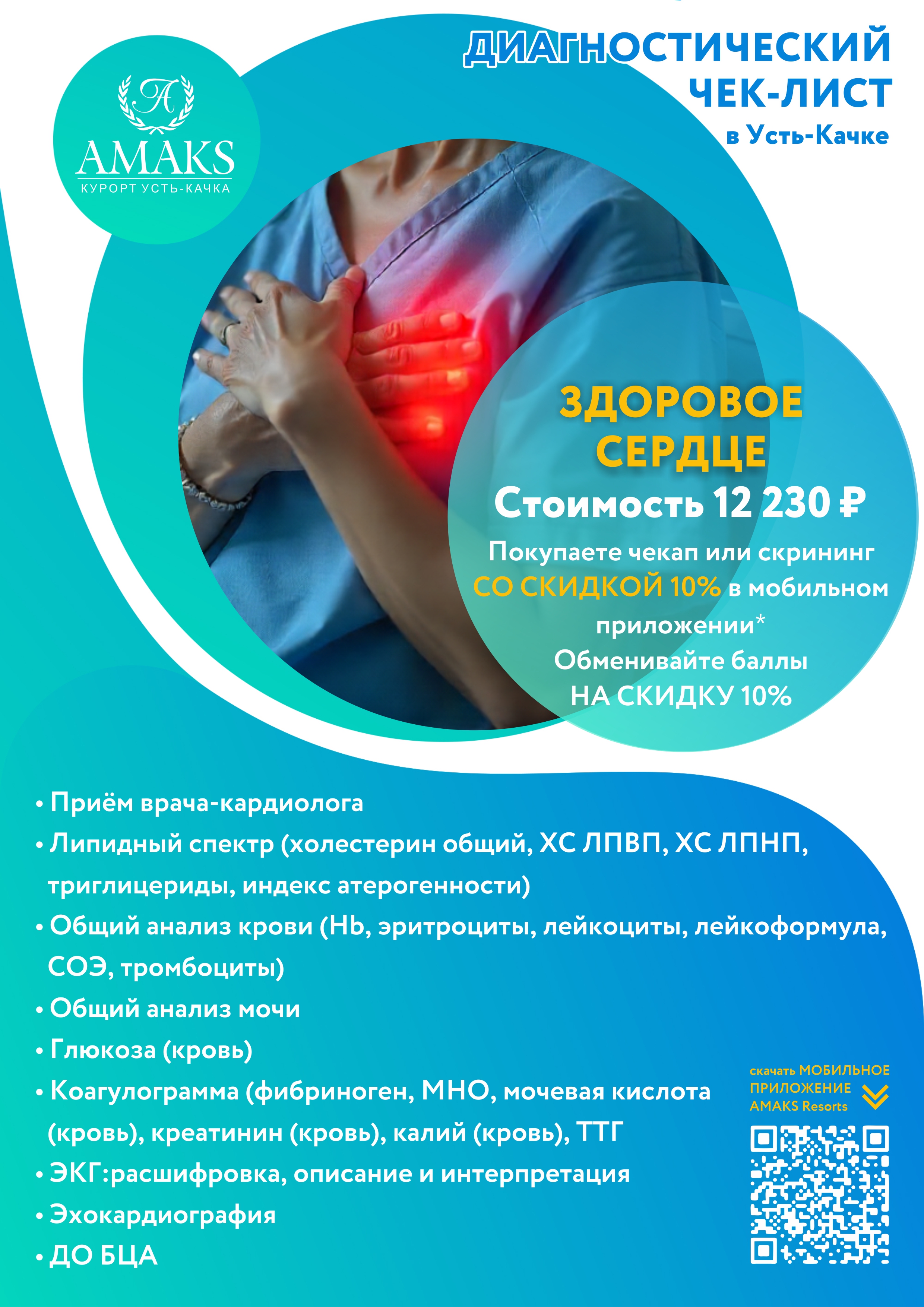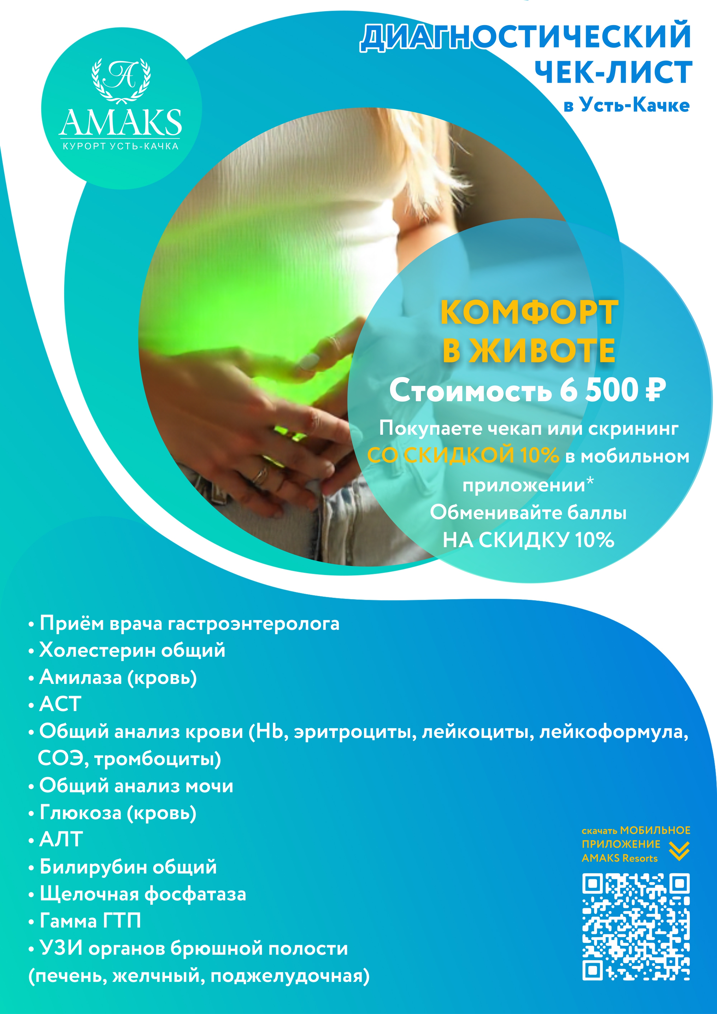 无需排队,调整工作日程并要求医生预约,您可以来到AMAKS Ust-Kachka Resort并尽快接受检查。