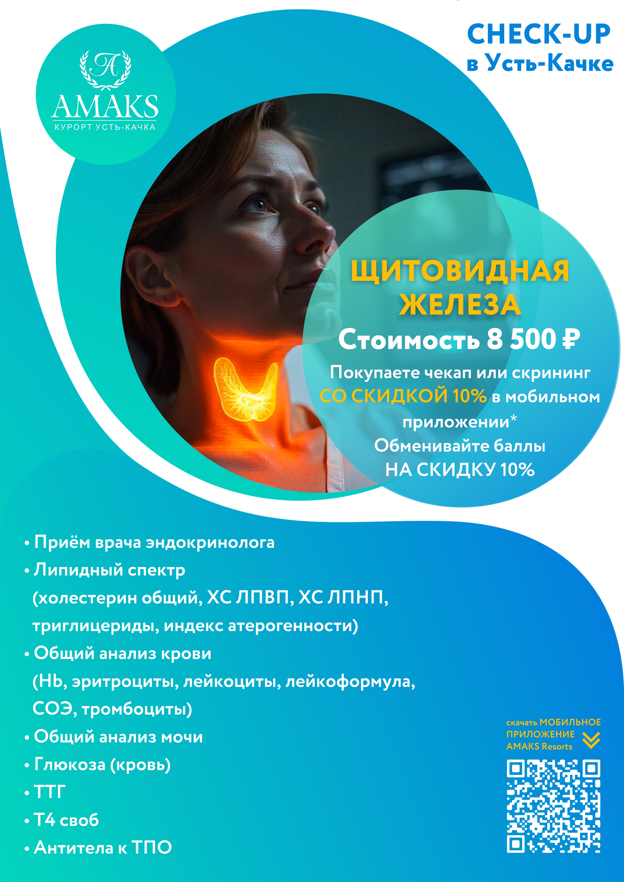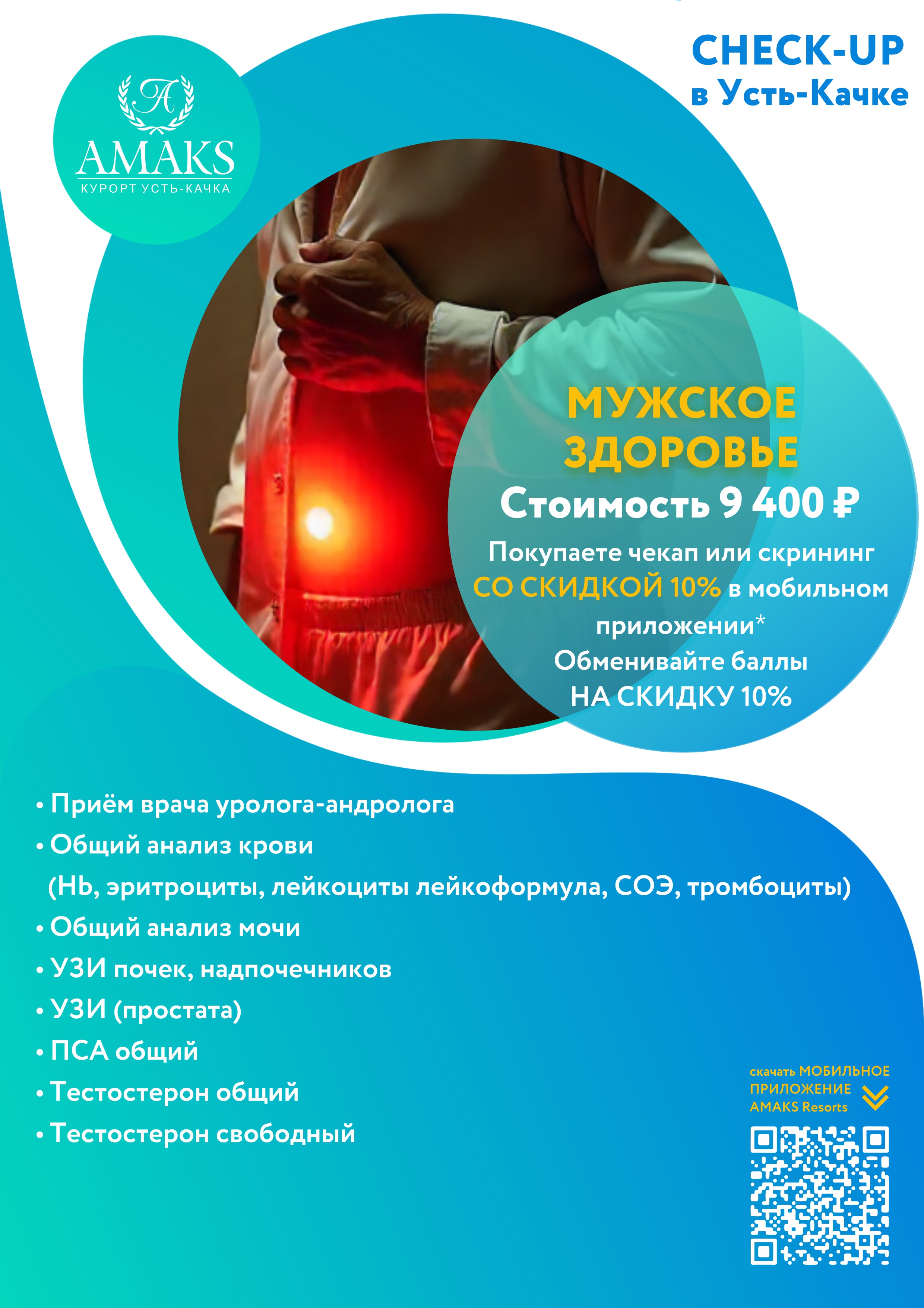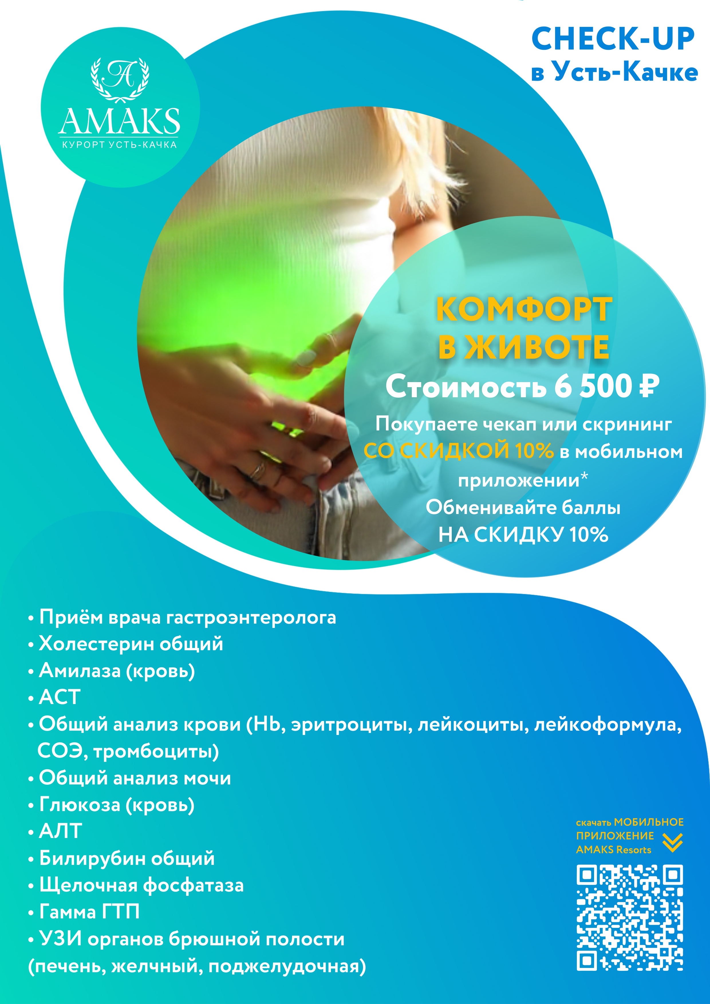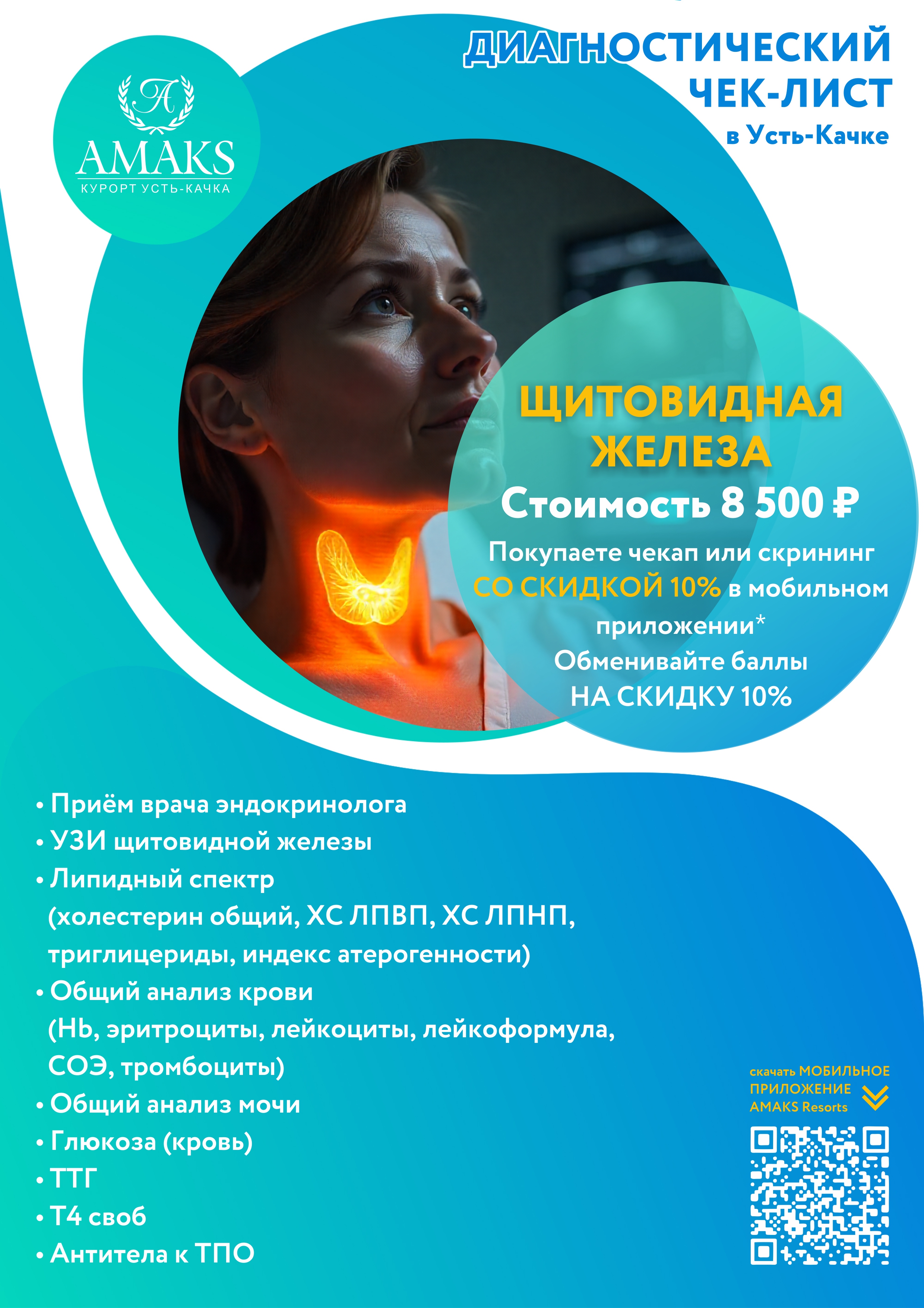 无需排队,调整工作日程并要求医生预约,您可以来到AMAKS Ust-Kachka Resort并尽快接受检查。